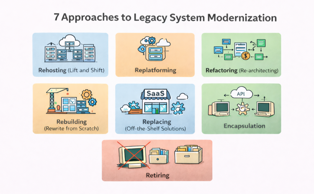 Therefore, modernizing legacy systems is required for many organizations; however, there is no universally applicable model for achieving this. The selection of the modernization approach will vary depending on business goals as well as the available budget and technological constraints.